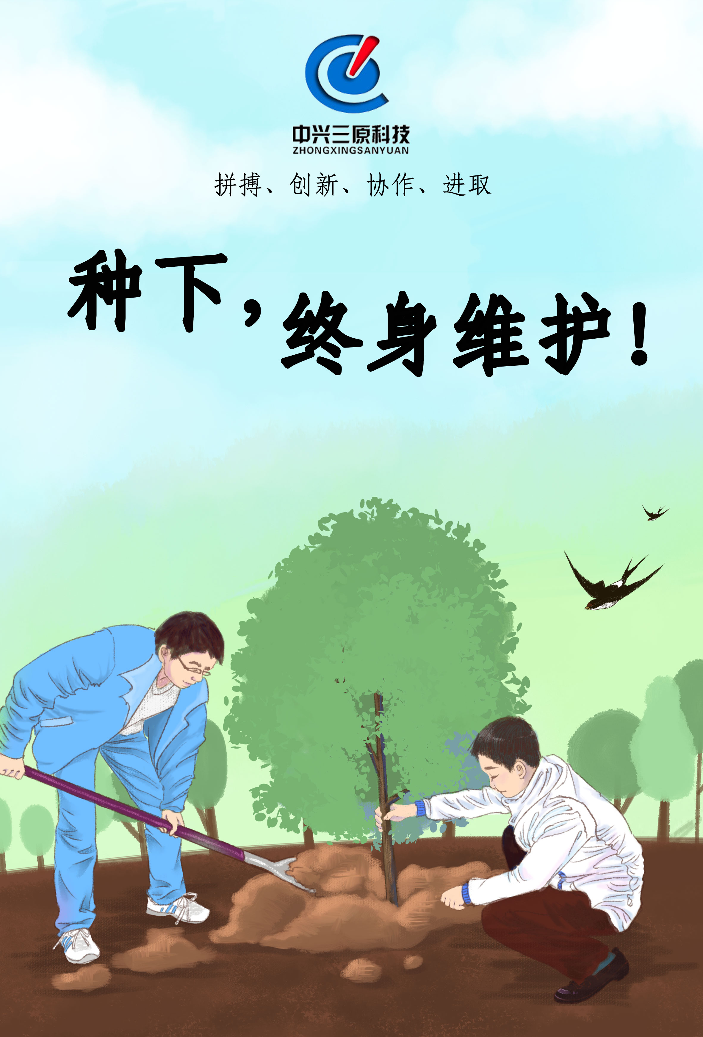 拼搏、創(chuàng)新、協(xié)作、進取,種下,終身維護! |